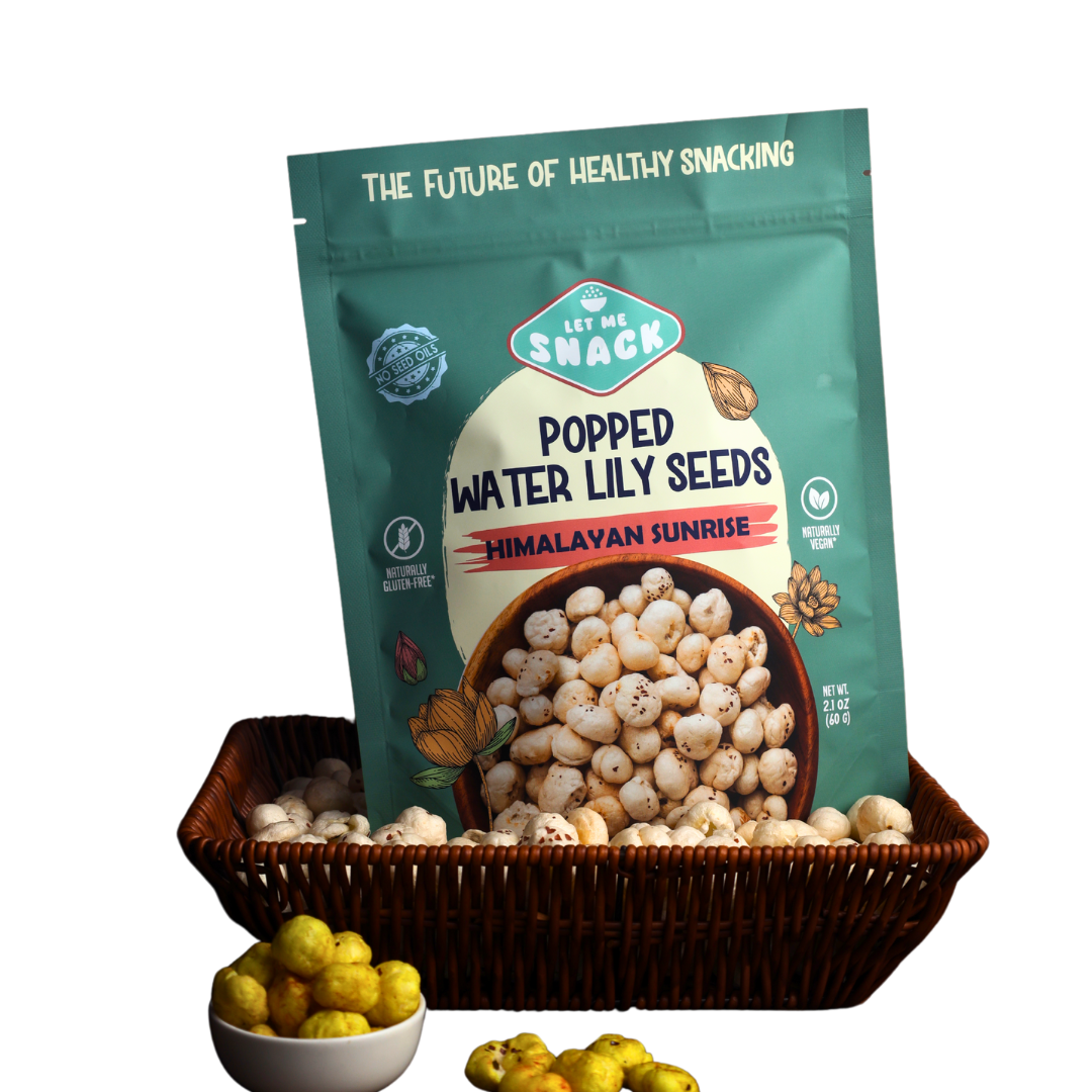 Our Popped Water Lily seeds, also known as lotus seeds, come in a variety of flavors that cater to different palates. From Himalayan Sunrise to Barbecue and Mint Masala, we have something for everyone. Eat it as is or put it on salads and soups!